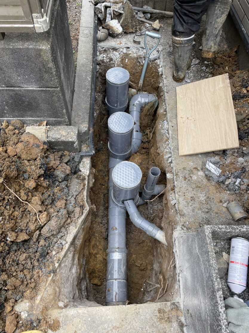 神奈川県横浜市港南区にて、外構の屋外排水管新設工事を施工させていただきました。